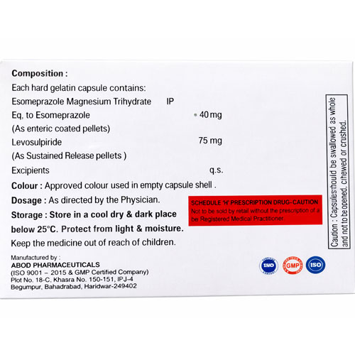 EZIVIN-L Esomeprazole 40 mg + Levosulpiride 75 mg (SR) Capsules
