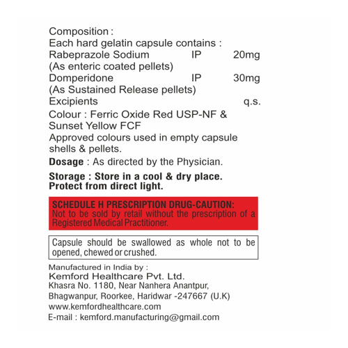 Rabeprazole Sodium (EC) IP 20 mg & Domperidone (SR) IP 30 mg